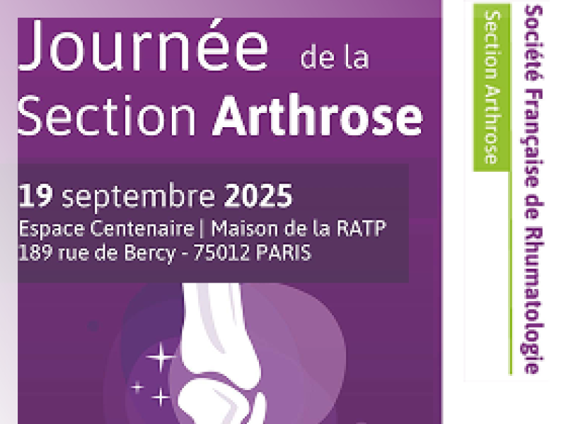 Rejoignez-nous le vendredi 19 septembre 2025 à l’Espace Centenaire – Maison de la RATP (Paris 12e) pour la Journée de la Section Arthrose de la SFR....