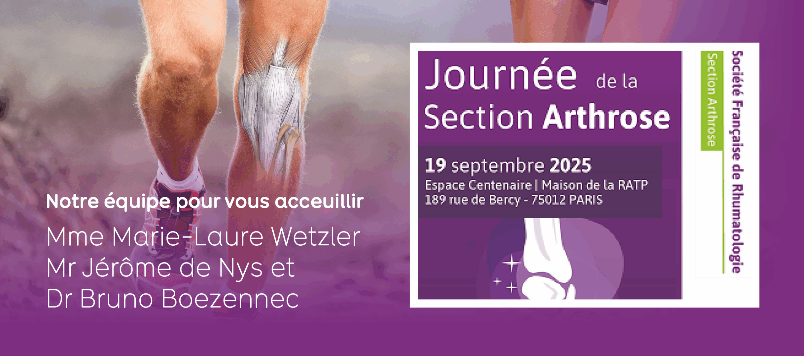 Rejoignez-nous le vendredi 19 septembre 2025 à l’Espace Centenaire – Maison de la RATP (Paris 12e) pour la Journée de la Section Arthrose de la SFR. Inscriptions individuelles et groupes ouvertes dès le 12 mai.