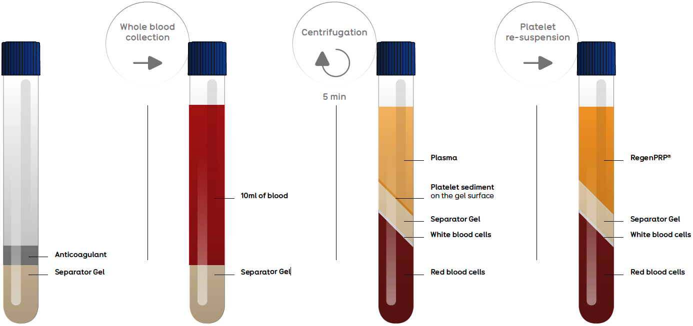 - RegenPRP® is standardised, leucocyte-reduced, and easily reproducible with RegenLab®’s specific separator gel technology, ensuring minimal variability